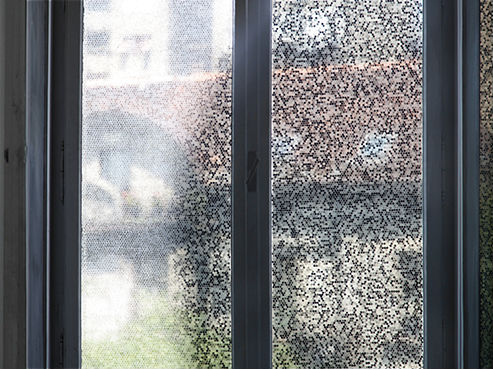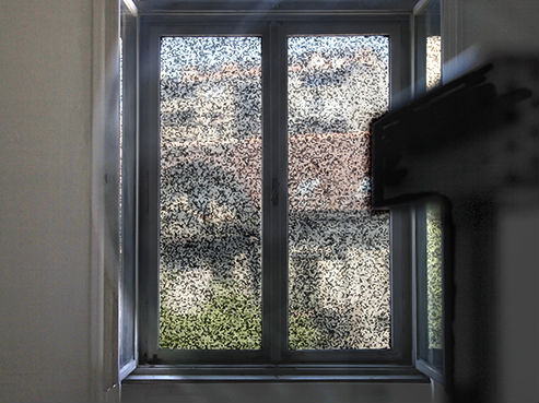 The sky above the port is inspired by the first sentence of William Gibson ‘s book Neuromancer: “The sky above the port had the color of television, tuned to a dead channel”. It is a site specific adaptations of the work Static. It’s made to the dimensions of existing windows.